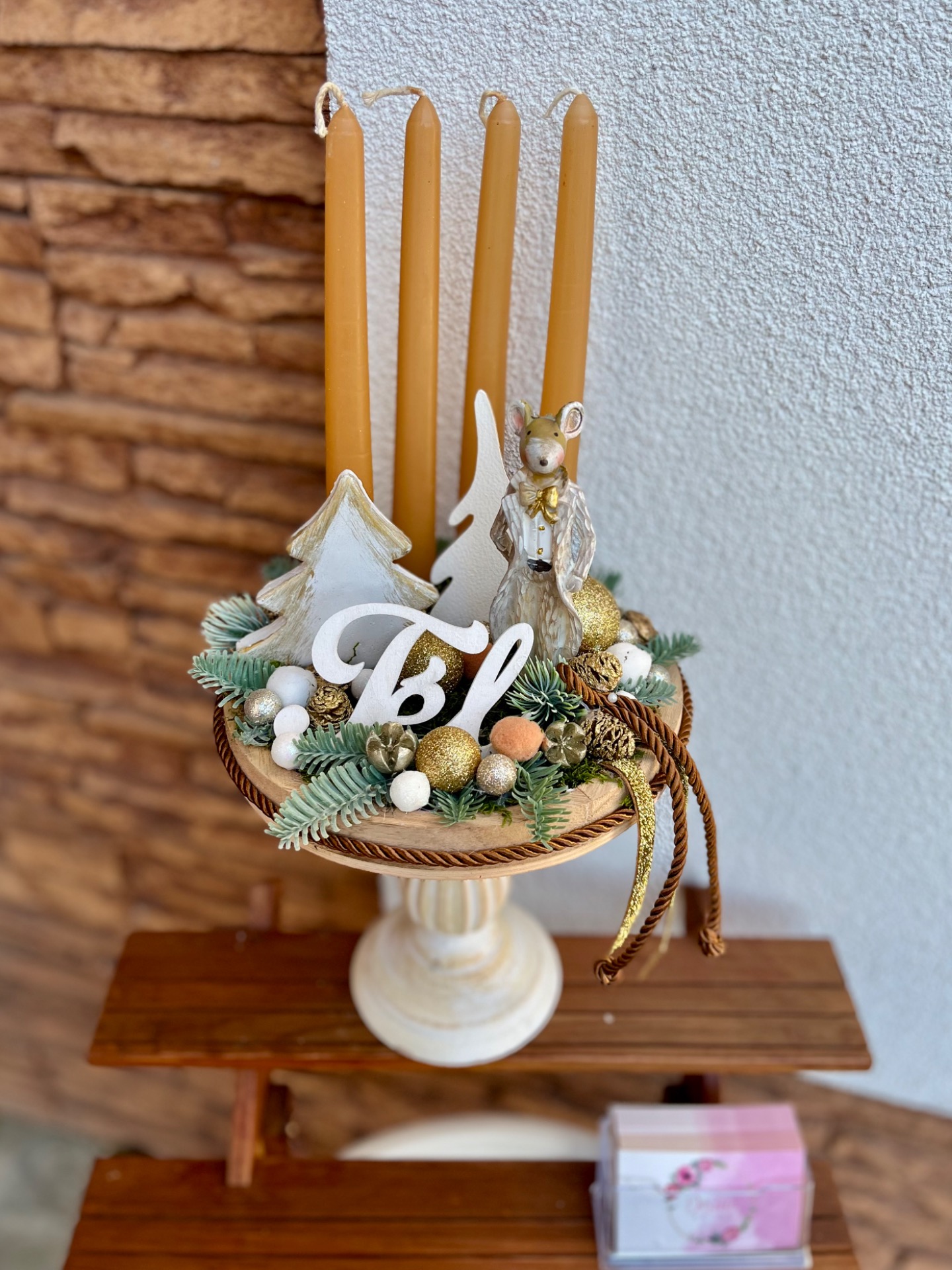 Adventi dísz-arany gyertyákkal