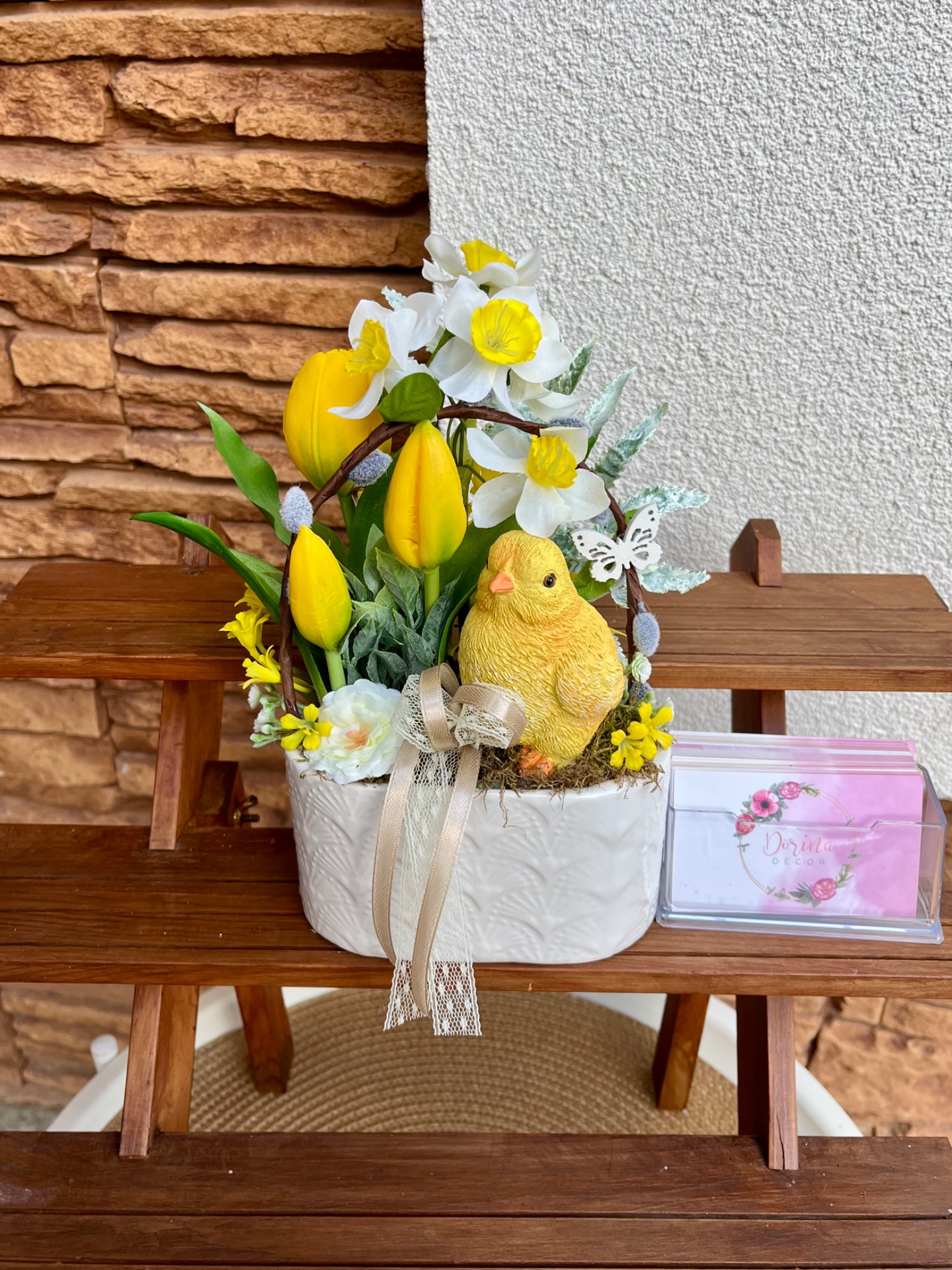 Húsvéti asztaldísz kerámi alapra, sárga csibével.