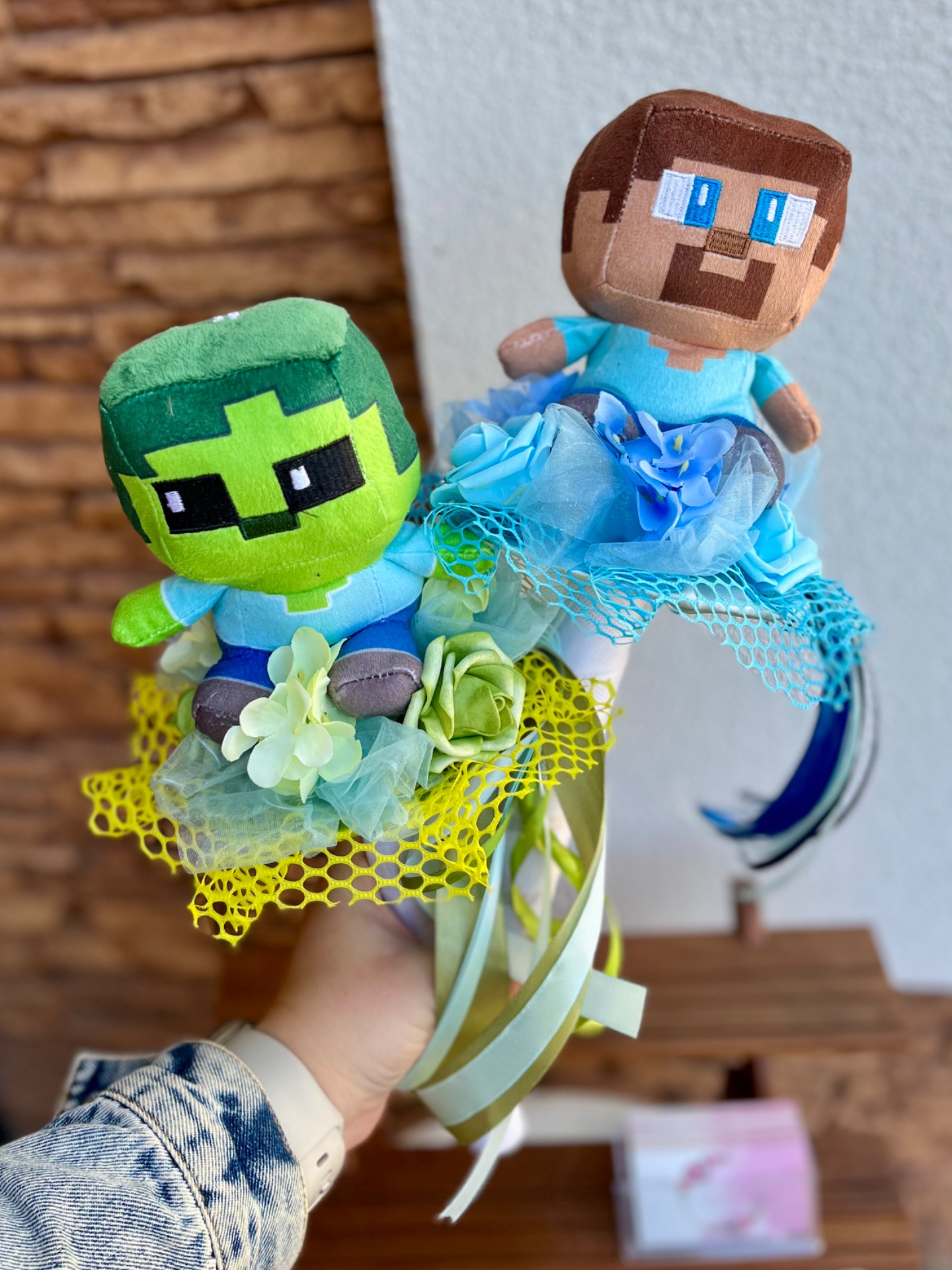 Ovis ballagási csokor-Focilabda-MINECRAFT KÉK FIGURA