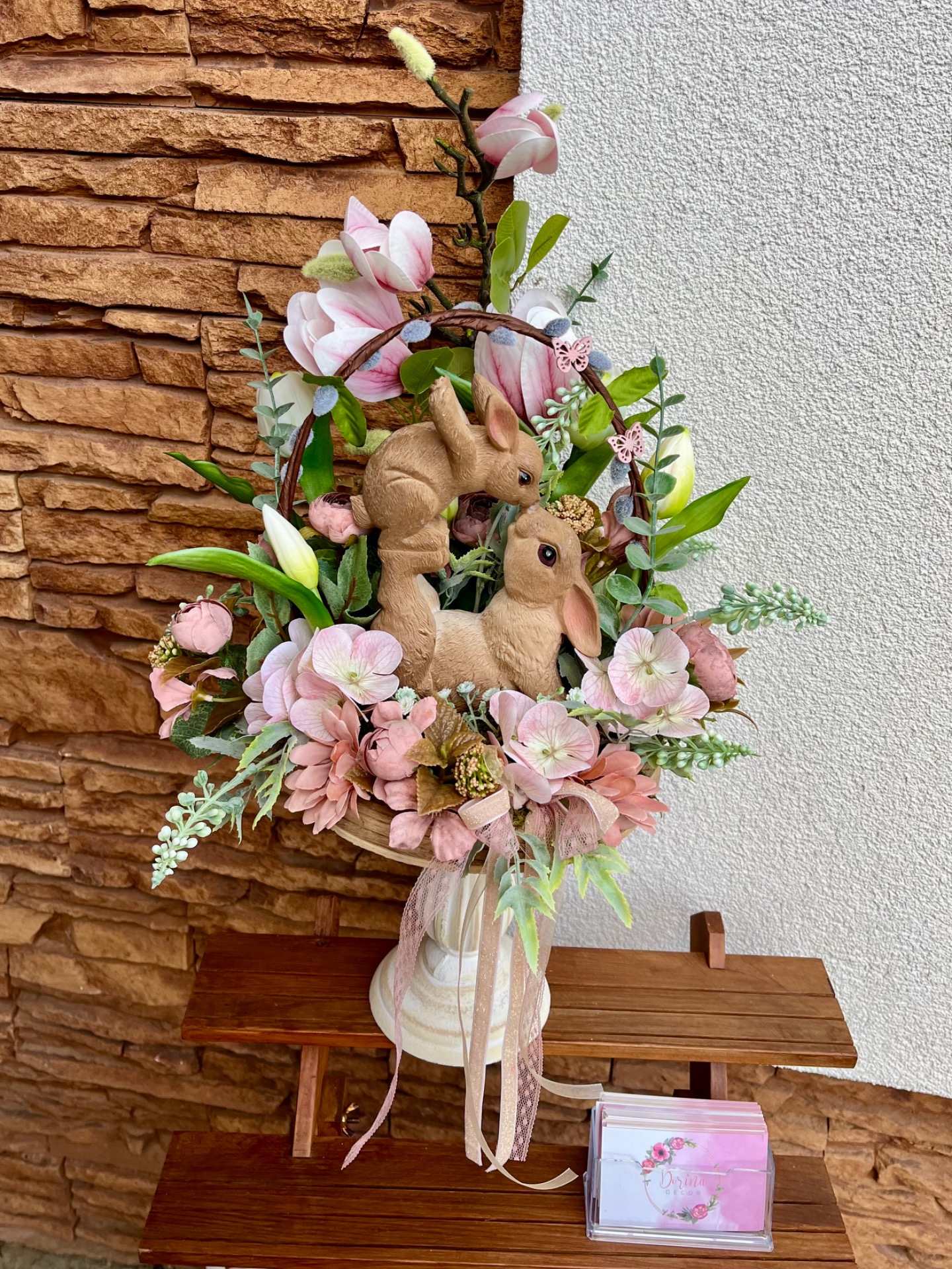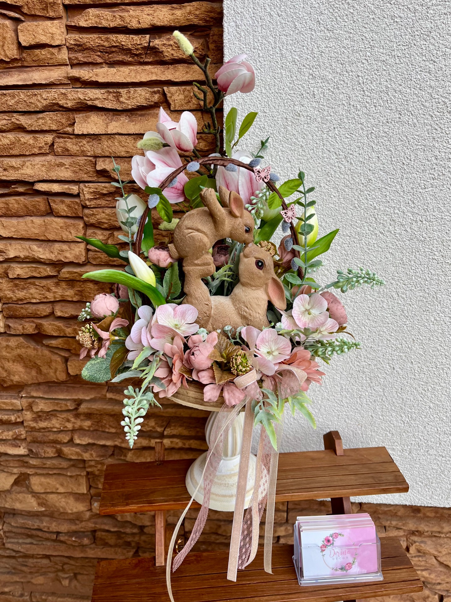 Igazán részletgazdag, teljesen körbedíszített, hatalmas húsvéti asztaldísz.